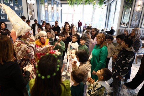 İştirakçılar bayramın mifoloji qəhrəmanları ilə birlikdə müxtəlif əyləncəli oyunlarda iştirak edib, Novruz atributları ətrafında şəkil çəkdiriblər.